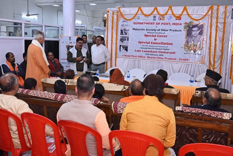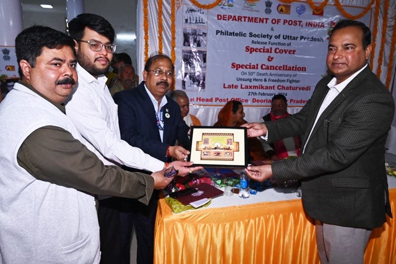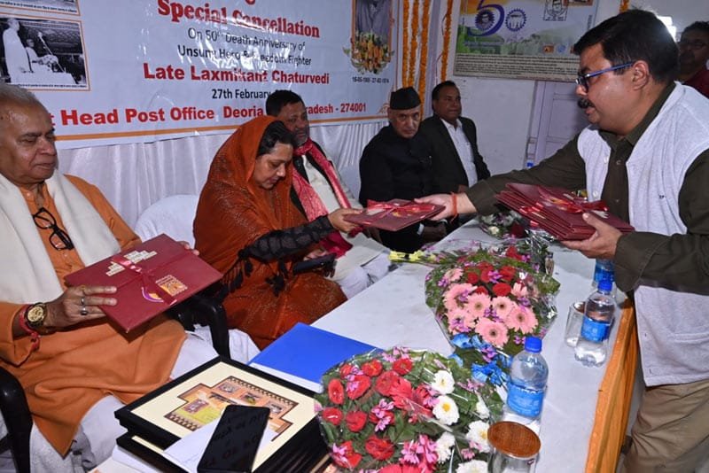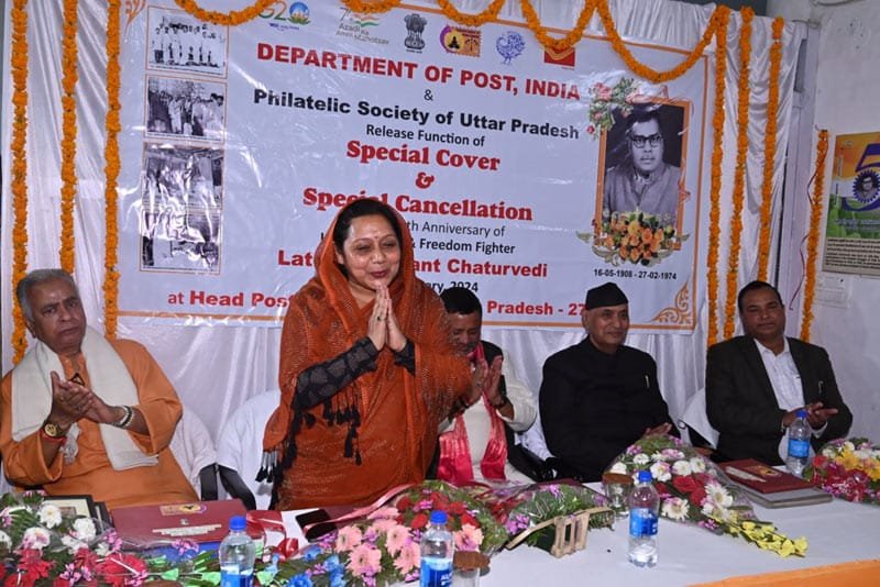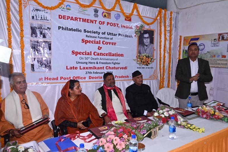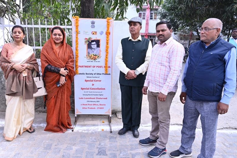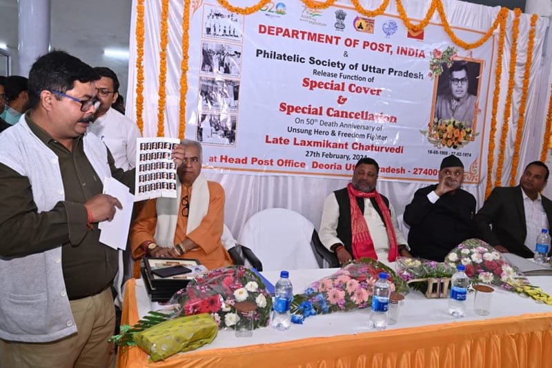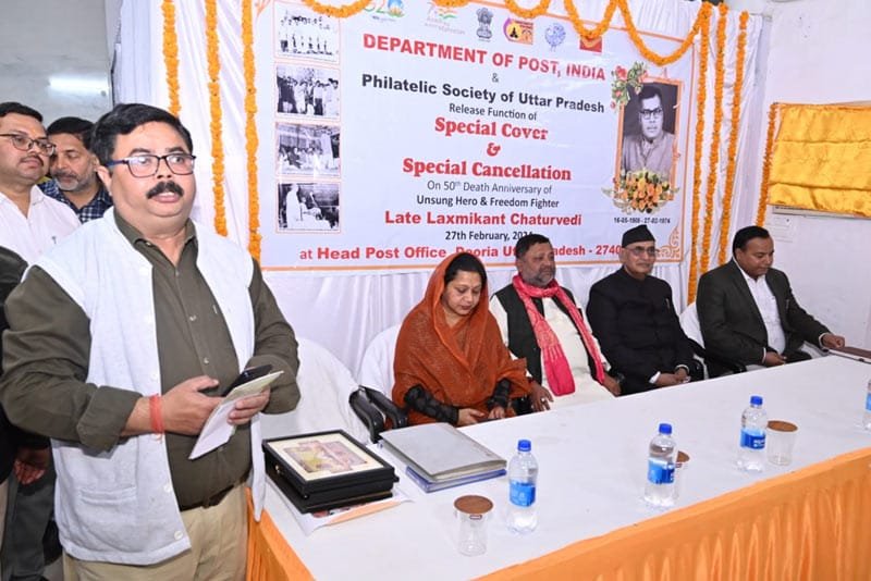भारतीय डाक तार विभाग द्वारा स्वतंत्रता सेनानी लक्ष्मी कान्त चतुर्वेदी स्मारक डाक टिकट का विमोचन नगर पालिका अध्यक्ष अलका सिंह जी द्वारा